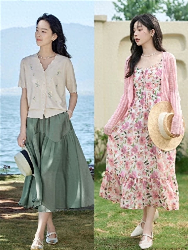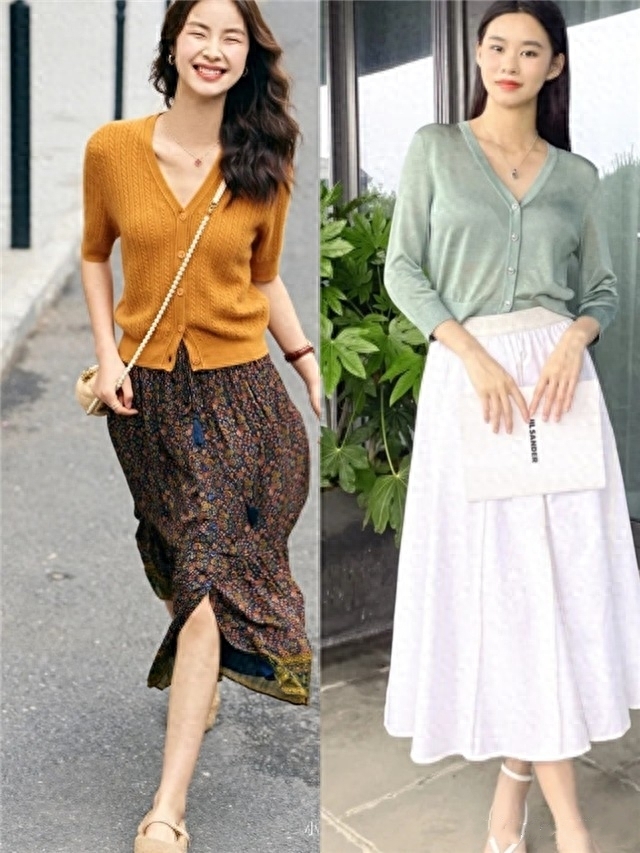 奶奶衫和膝下裙的搭配對於四五十歲的女人來說是絕佳的顯氣質神器,既溫柔又很優雅,保證讓你美到骨子裡。喜歡減齡一些的造型,就可以選擇蛋糕裙搭配奶奶衫。而更加甜美的穿法,則是選擇「碎花裙」和純色奶奶衫組合,在減齡的同時又能打造出浪漫的氛圍。