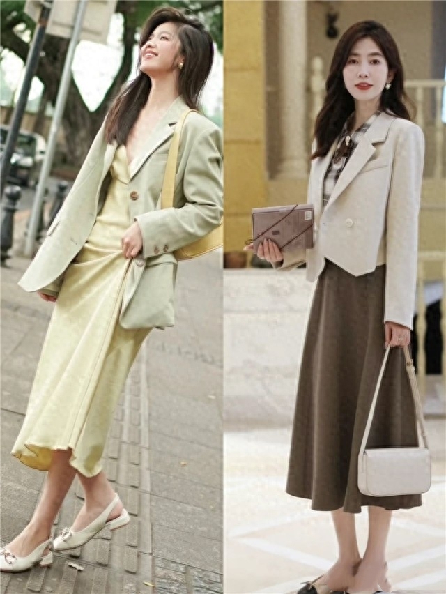 而西裝作為四季都很常見的單品,要想演繹出更有氣質感的穿搭。那不妨嘗試一下用西裝和膝下長裙進行組合,不僅可以營造出剛柔並濟的「娘Man風」穿搭,還能打造出更加優雅知性的風格。