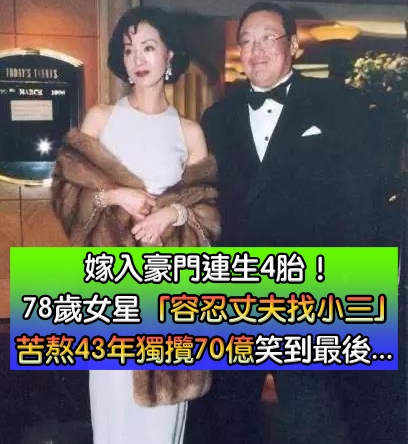 人間清醒!78歲女星「容忍丈夫找女人」堅決不放手 苦盡甘來「獨攬70億財權」:小三分文不得