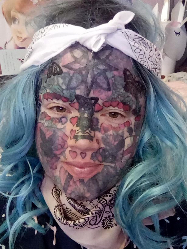 梅麗莎表示自己在20歲時迷戀上刺青,尤其特別喜歡臉部的刺青,接下來的26年期間她在全身上下每一片肌膚刺上近800處刺青,臉部更是「刺滿3層」,一層疊一層的重疊圖樣已經幾乎看不到原先的皮膚!