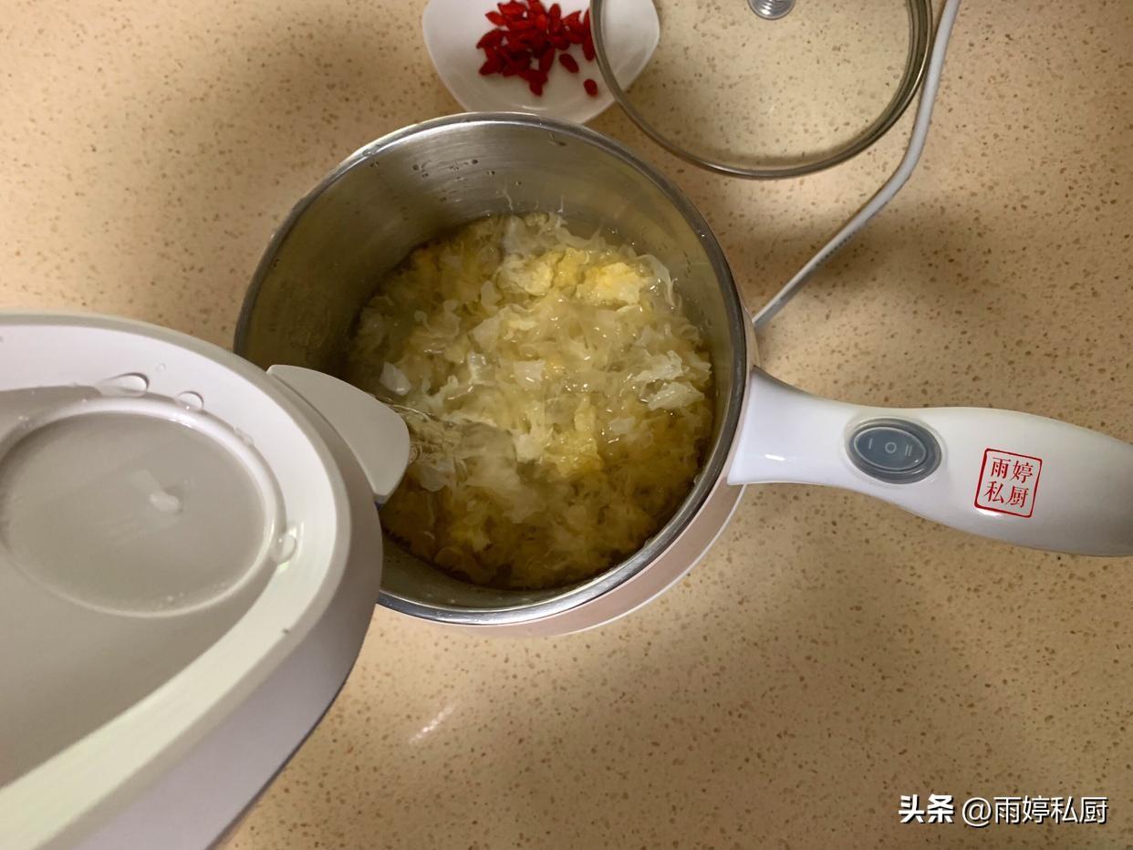 4、把銀耳燉煮得膠質滿滿,口感軟糯,被譽為「平民燕窩」,枇杷果香清雅,入喉舒適,清熱潤燥,清肺止咳等,好吃又營養。