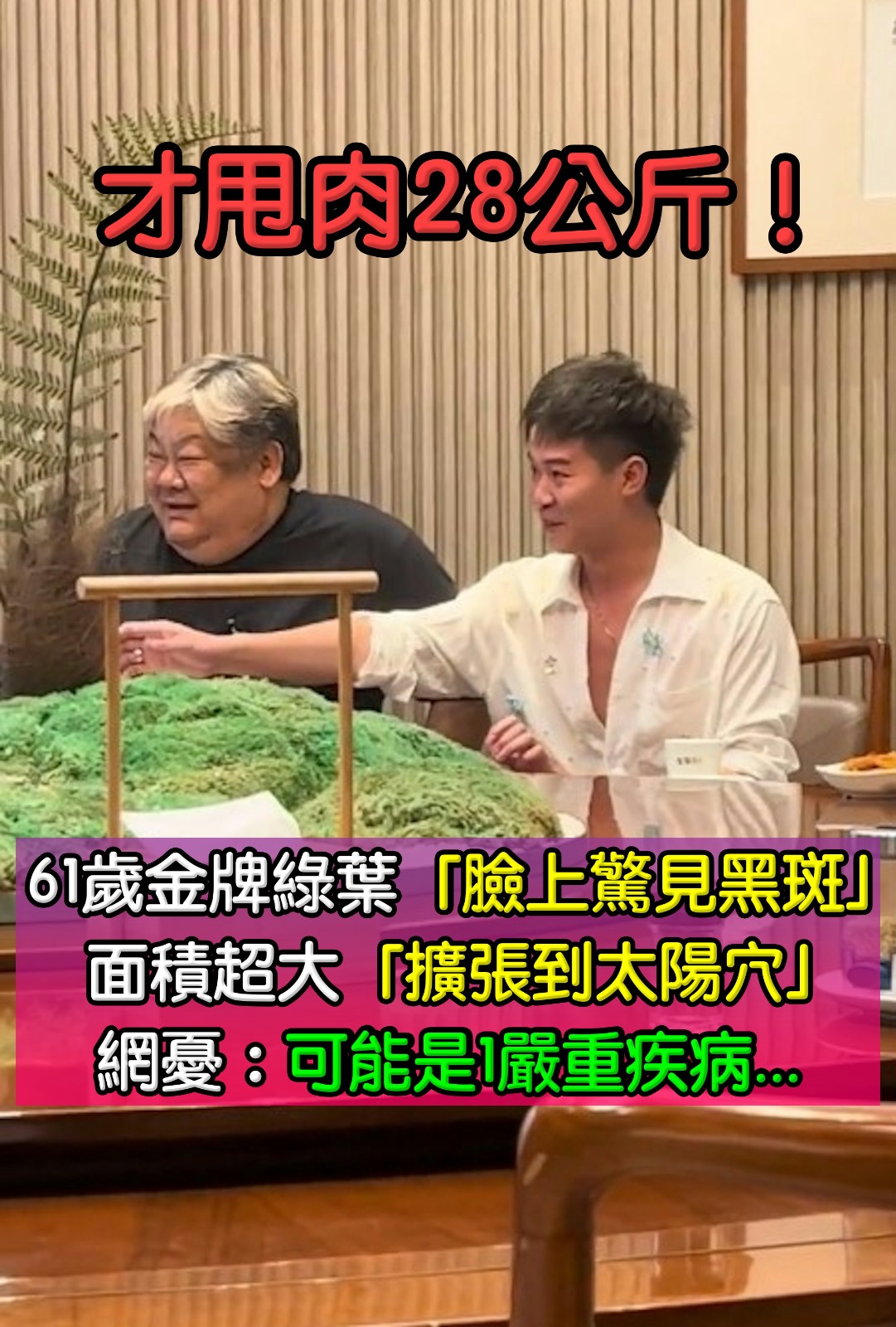 才甩肉28公斤!61歲金牌綠葉「臉上驚見黑斑」 面積超大「擴張到太陽穴」網憂心:健康亮紅燈了...
