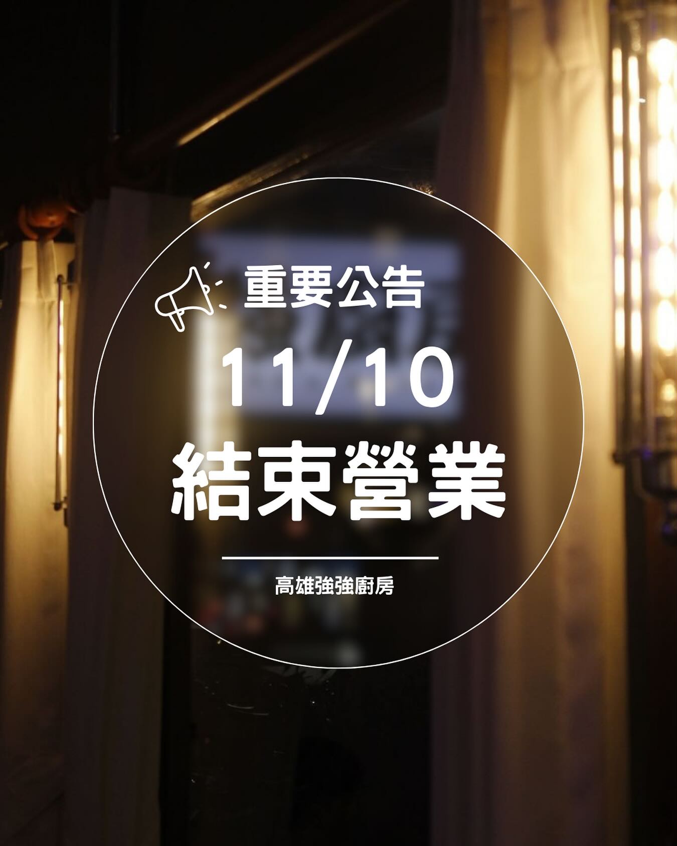 今年2月28日,台東名店「強強廚房」高雄分店正式開幕,吸引大批顧客光顧,不料才經過8個月的時間,業者卻在臉書粉專宣布熄燈,表示高雄「強強廚房」營業至11月10日,並在11月11日正式結束營業,同時也提醒有在10號以後訂位的顧客,聯繫處理退費事宜,「你們的支持,我們真的很感動,謝謝你們!」