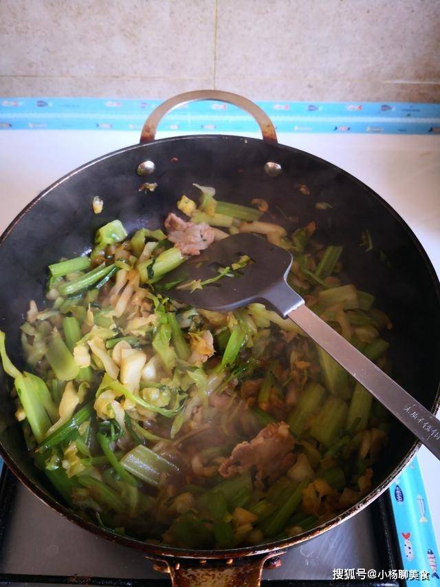 芹菜 200克、捲心菜 150克、料酒 少許、十三香 少許、醬油 少許、精鹽 少許、雞精 少許、蔥薑蒜 少許、玉米油 適量