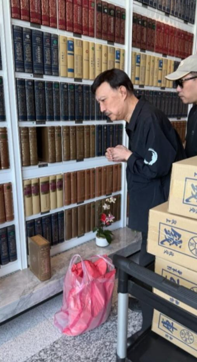 從拼貼的照片中可以看到,第一張是塔位外的海景,其他三張則是余天夫婦在塔位前的場景。照片中,余天推著裝載供品的推車,朝著女兒的塔位前進,雖非動態,卻可以看出他腳步沈重,面部莊嚴肅穆,並在抵達後雙手緊握,惆悵之心溢出螢幕之外;而李亞萍則在書本造型的塔位前,彎腰對著女兒說話,2老的一舉一動雖未述說細節,但讓許多人為之鼻酸。