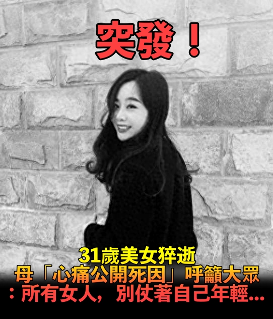 震撼全網!31歲美女網紅猝逝「母心痛公開死因」:所有女人,請妳別仗著自己年輕