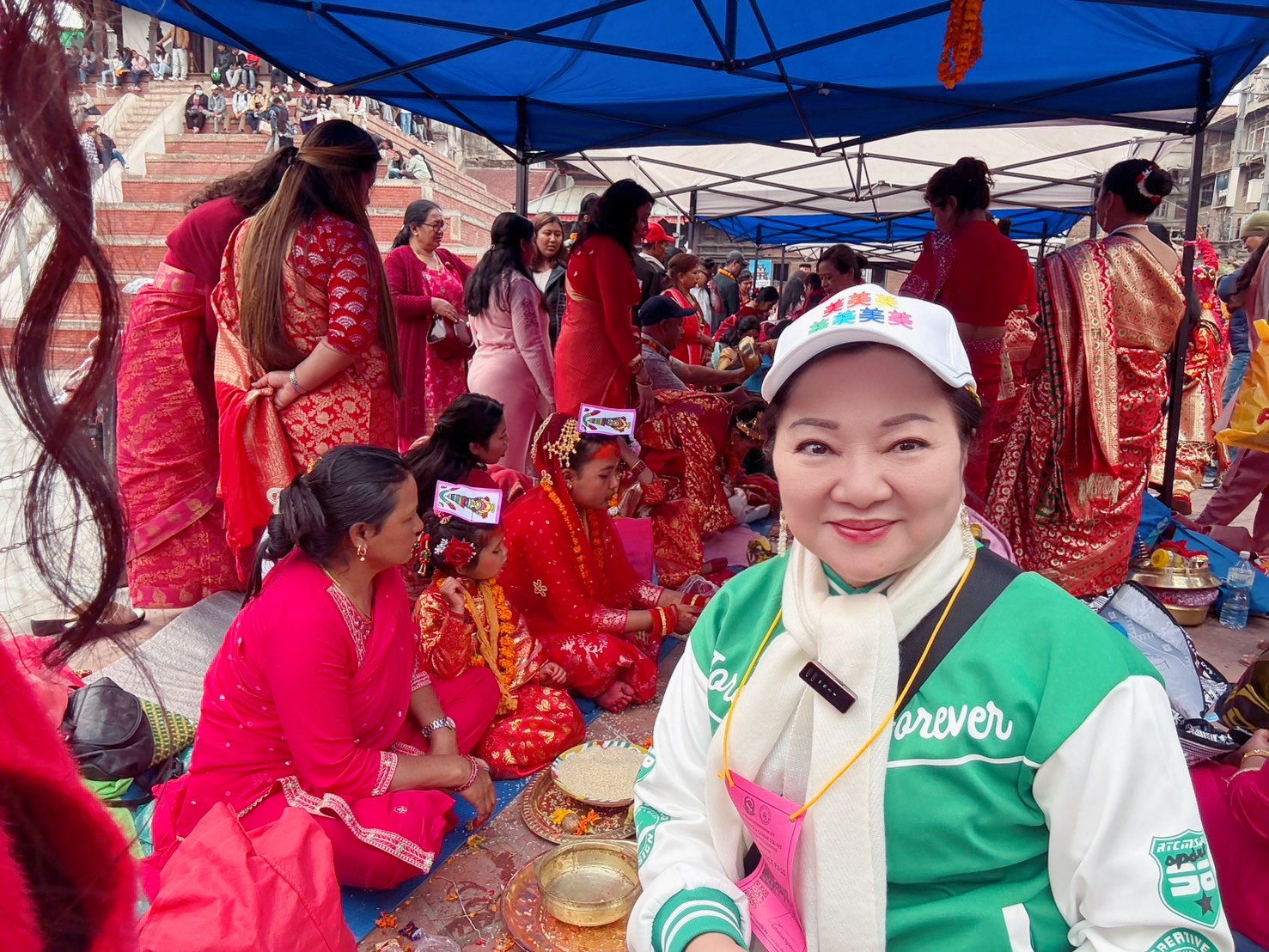 抵達尼泊爾首都加德滿都後,眼前車水馬龍、塵土飛揚的景象,與台灣截然不同。身為虔誠佛教徒的白冰冰原本已做好刻苦修行的心理準備,豈料下榻的飯店卻出乎意料地舒適,傳統建築中融入當地特色的精緻裝潢,讓她驚喜不已。有趣的是,她還用英語向服務人員詢問飯店擺設的花朵品種,展現了不為人知的語言能力。