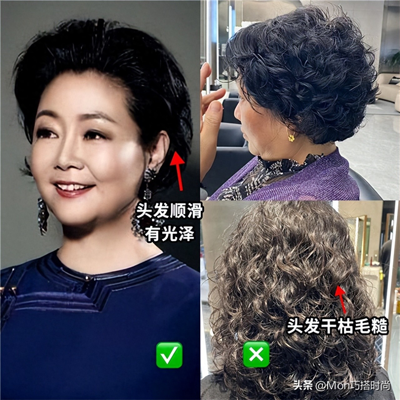 我們一定要避開這種頭頂貼頭皮的髮型,不少中年女性燙髮只燙髮尾不燙頭頂,頭頂的頭髮貼著我們的頭皮,再加上髮量變得稀疏,就更容易讓我們的臉看上去大一圈,這種髮型也的確容易顯老,所以大家燙髮時也要避免這一個雷區。