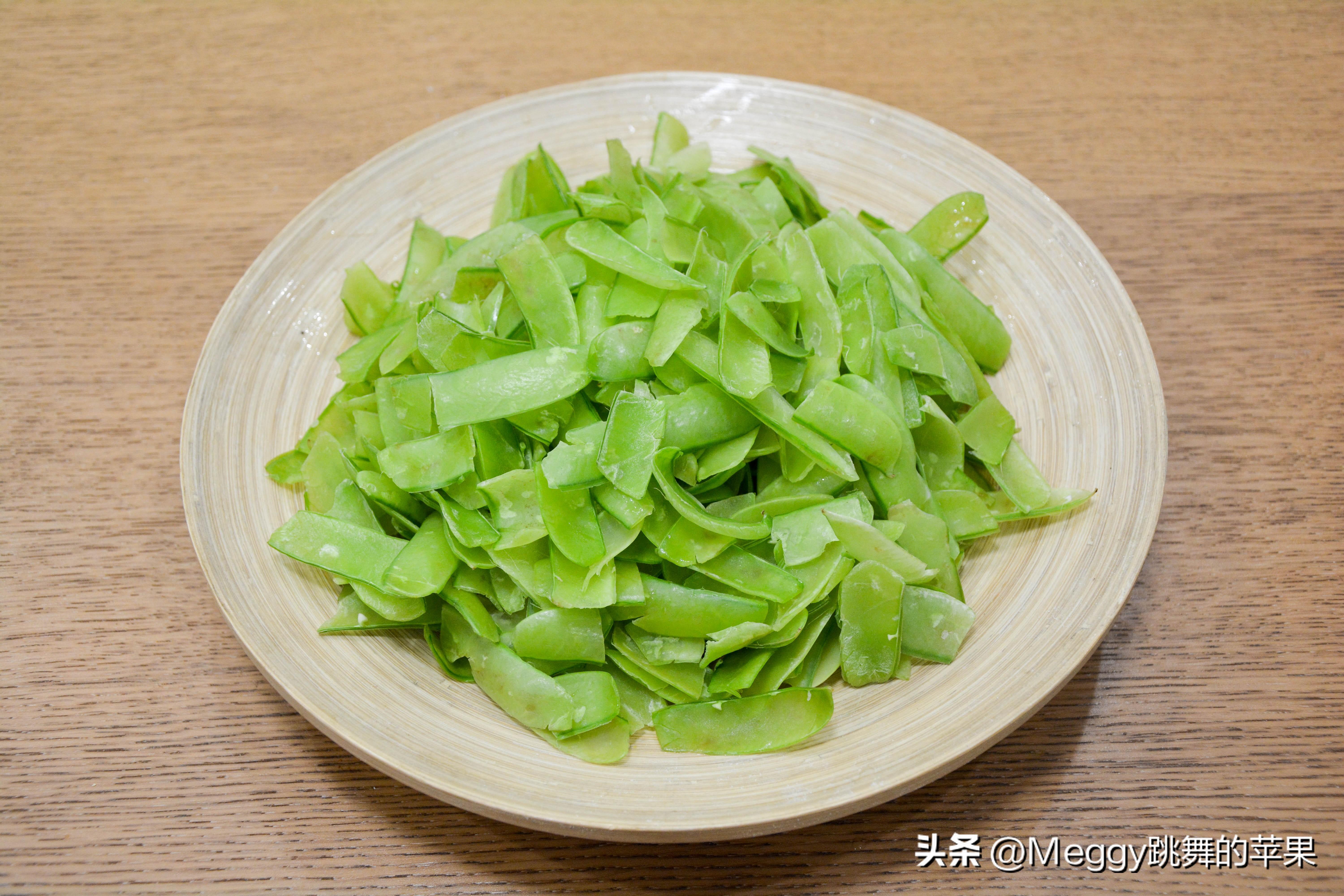 1. 取適量豆莢入開水中,焯燙變色撈出;