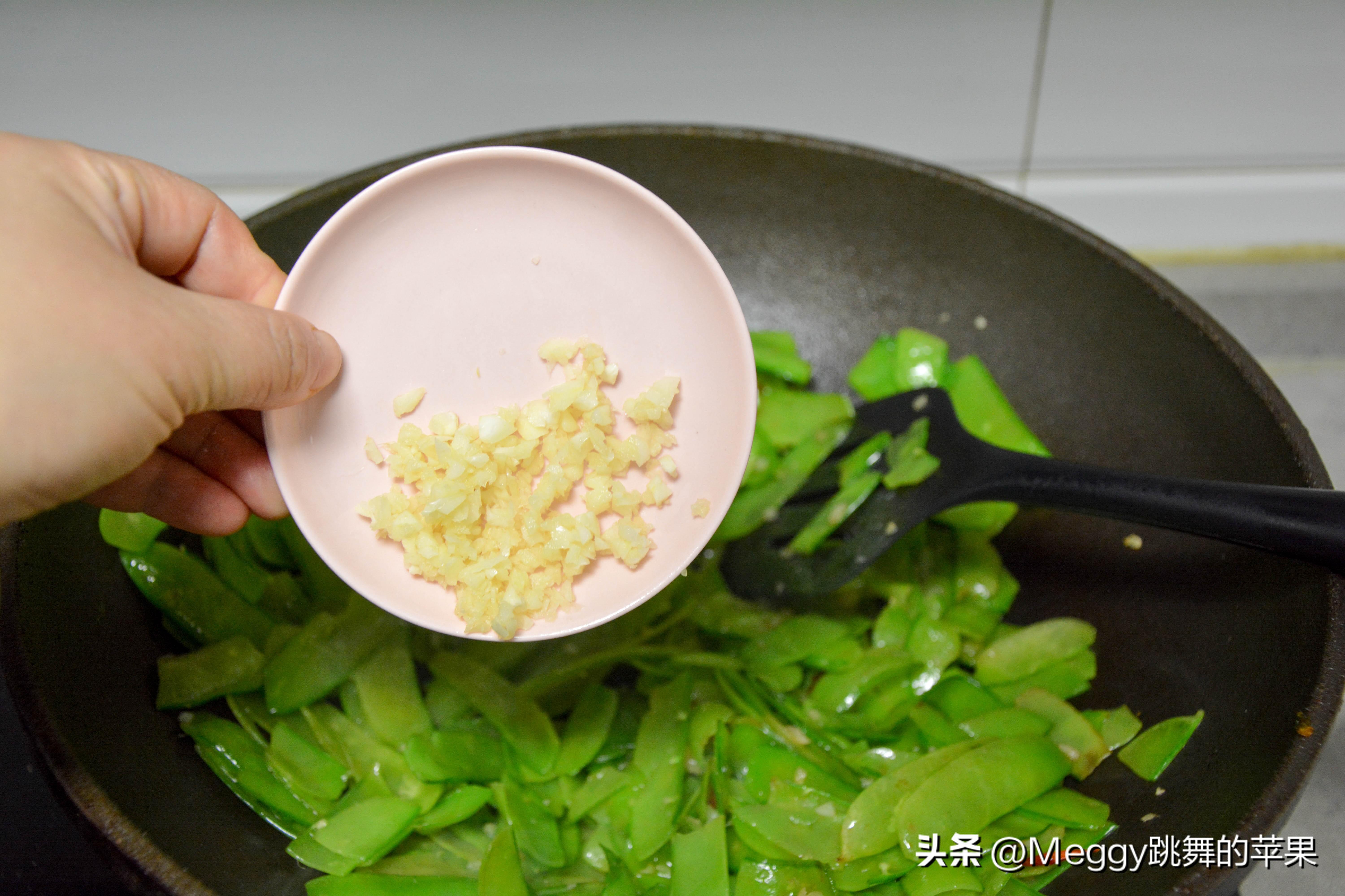 4. 待豆莢變軟,倒入剩下大蒜末;