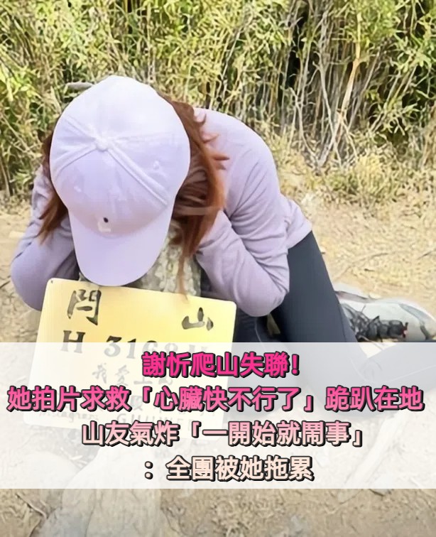 謝忻驚傳爬山失聯!她拍影片求救「心臟快不行了」跪趴在地 山友氣炸「她一開始就鬧事」:全團被她拖累
