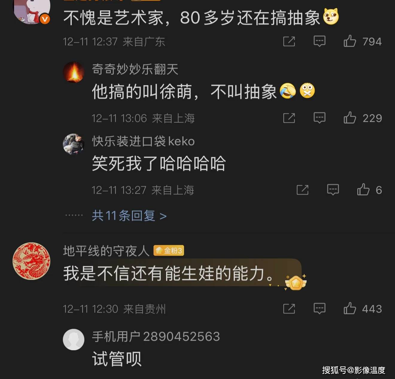 更有不少網友調侃:「一紙聲明,把幾代人的情感和信任撕了個粉碎」,更很多人吆喝,要他幫孩子做親子鑒定,這顯然是吃瓜群眾的調侃,但也是對老人家的不尊重。