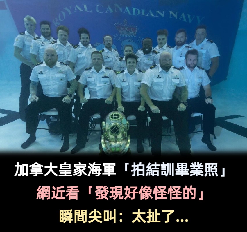加拿大皇家海軍結訓秀「泛藍畢業照」!表情「極度猙獰」網近看發現亮點:難度100% Jessie 2026-04-09 檢舉 來源:Youtube/@CTV New所有人就位後,還必須克服有人需要換氣跟忍不住閉眼睛的難關,拍了好多次,才終於拍到完美的瞬間,不過事後還是要花不少時間後製,消除畫面中的氣泡,這組特別的照片真的很有紀念意義!來源:Youtube/@CTV New Advertisements 回首頁 2/2 Advertisements 編輯精選推薦 More + 台灣人一致認同!國旅「最不想去縣市」第一名出爐 價錢過高「現場又很落漆」:不值得 在娘家沒掃過墓!她清明節「隨夫家掃墓拜拜」超害怕 回家後不舒服「身體出現2異狀」靠收驚才解決 全球「最安全航空」2026榜單曝!台灣這航空「奪下第8名」唯一擠進前十 85歲失智父身亡!林葉亭突宣布「皈依佛門」 遇大師「開示一番話」忍不住淚崩 兒子在高鐵上吃泡麵!味道擴散被乘客辱罵「沒教養」 爸爸回一句話「理性又霸氣」令其當場噤聲 才剛辦完婚宴!老公「玩手機玩到睡著」 妻無意間「看到手機螢幕」得知隱瞞4年的真相 被混混男友洗腦!她滿臉刺青「恐怖入獄照瘋傳」 如今終於醒悟「洗掉紋身後模樣」太美了 聚會遇見「和自己長一模一樣的人」!連興趣都像成為閨蜜 一年後「突然想到要驗DNA」結果傻了 宮廟恐怖意外!千斤橫樑斷裂「砸死17歲少女」順天宮回應了 整容毀掉容美貌!61歲女星整成錐子臉「下巴凸出不明肉球」 網翻出舊照嘆:「原本的樣子多美...」 不顧父母反對!醫生小開「堅持娶低學歷正妹女友」 生高顏值小孩「20年後他卻後悔了」:爸媽的話要聽 回家後的天堂!小空間裡「大理石灰白浴室」質感滿分 一旁洗澡區「碳石黑淋浴花灑」宛如藝術品❤️ 猜猜她幾歲?超成熟學生「濃妝畢業照瘋傳」 得知「她真實年齡」網嚇瘋:以為是媽媽 事業風光情路坎坷!77歲女神「渣夫出軌還求復合」 她單身至今「被偶遇驚天一幕」:根本反人類 當年比鳳飛飛還紅!台灣「炫風歌后」嫁國外淡出 67歲「轉行新身分超狂」當地人讚:很敬重她 10幾年沒洗牙!「噴出11mm牙結石」破紀錄 醫揭恐怖下場 將1000元存銀行!她一直忘記取出 15年後想起再去銀行「一看餘額」令人大吃一驚
