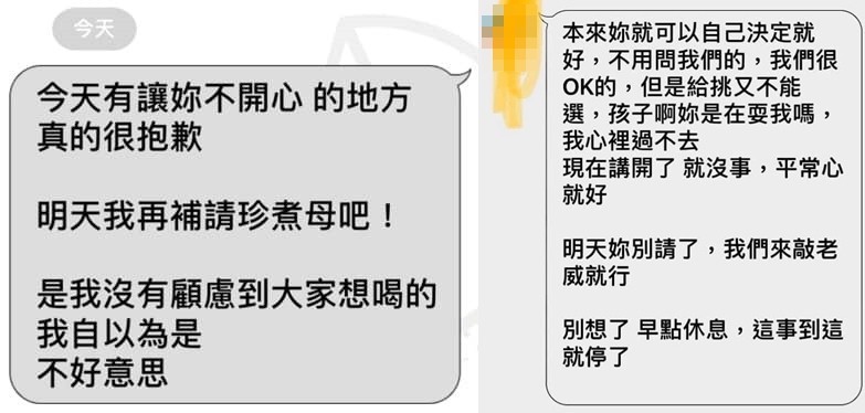 對此網友們看完後,都忍不住替原PO打抱不平,紛紛留言說「妳根本沒有錯,本來可以不用道歉」、「不用理她,愛喝不喝隨便她」、「客隨主便…本來就人家請什麼就喝什麼啊」、「這就是為什麼我都不請,沒請沒事,請了一堆事」、「當自己公主逆」、「有得喝就要感謝了,還氣那麼多天,想翻白眼」、「這種人真的很討厭!!這種文化更討厭!」