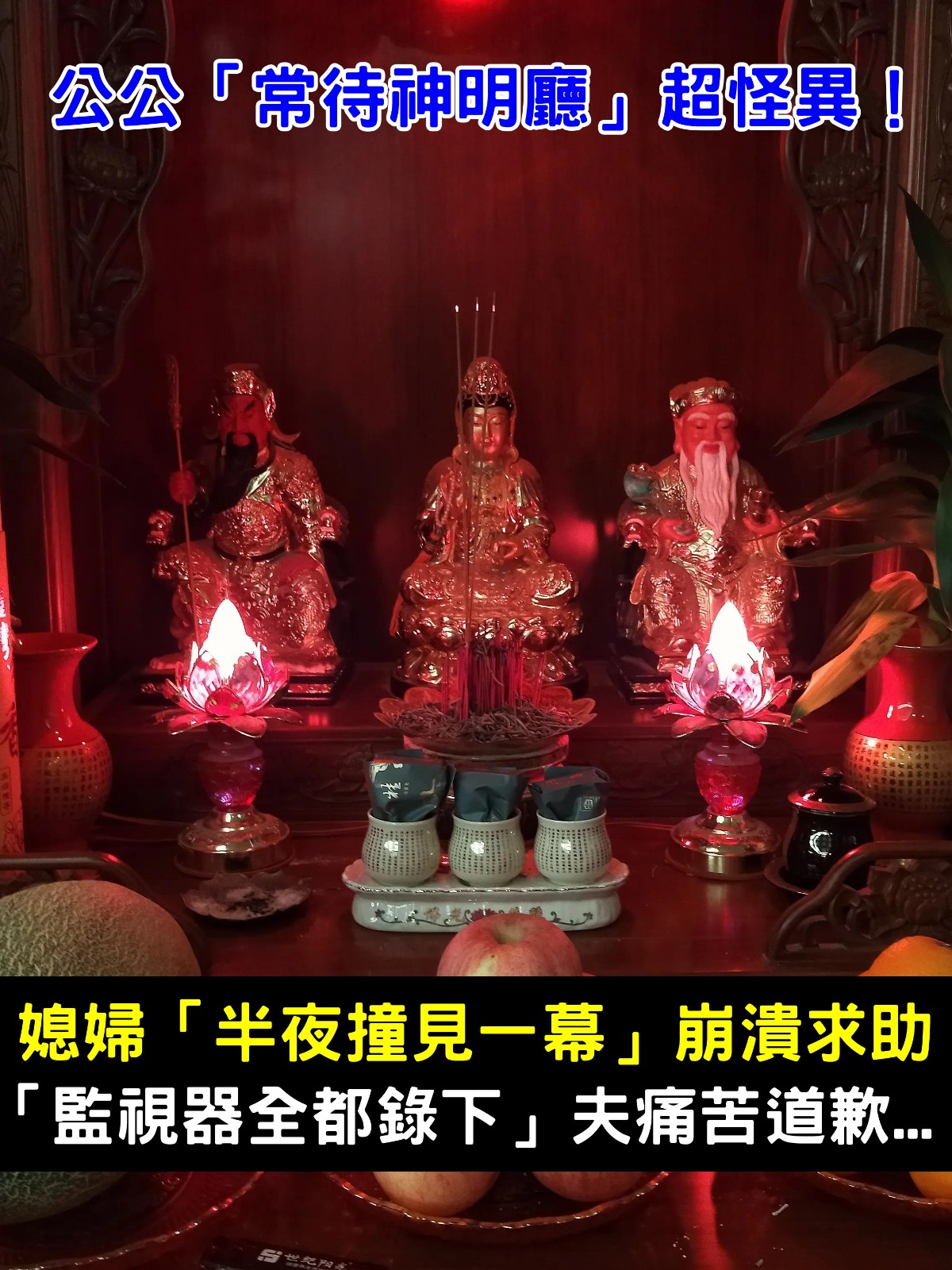 公公常待神明廳?人妻半夜偷看「驚見真相」崩潰求助 「監視器全都錄下」夫痛苦道歉
