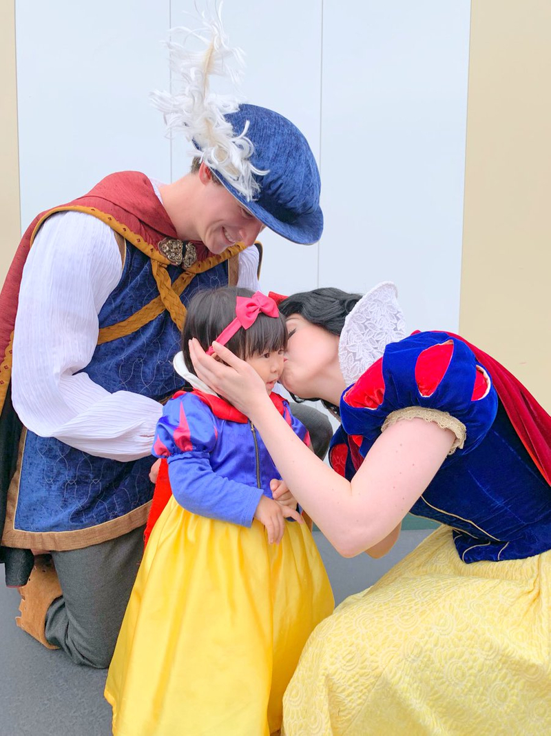 不僅如此,就連白雪公主本人都慕名前來,一大一小白雪公主同框畫面超夢幻,最後妹妹也得到了公主的香吻一枚,這是比親筆簽名還要珍貴的紀念品呀~