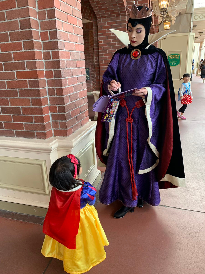 雖然壞皇后臉超臭,但她最終還是心不甘情不願地替小女孩簽名了XD 只能說可愛就是正義,就連皇后也無法抵抗迷你白雪公主的魅力啊~