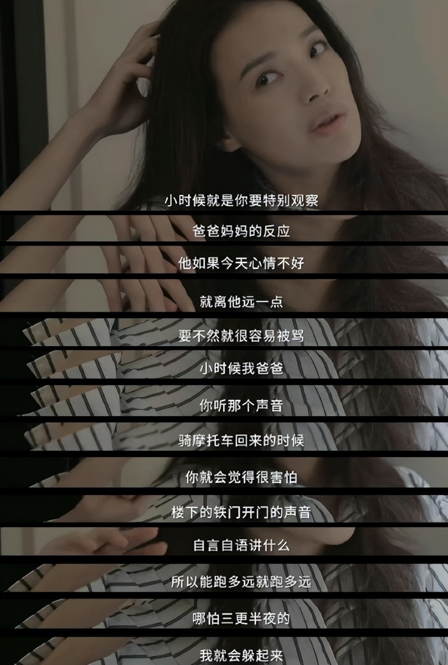 聽到父親騎摩托車或走路回家的聲音後,她都會躲起來,怕一個不小心觸霉頭就挨打了。