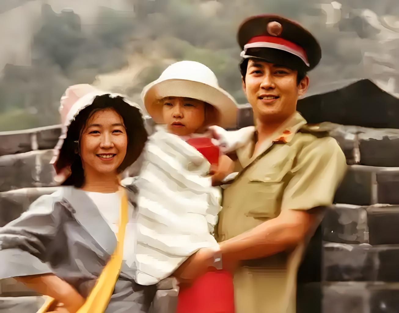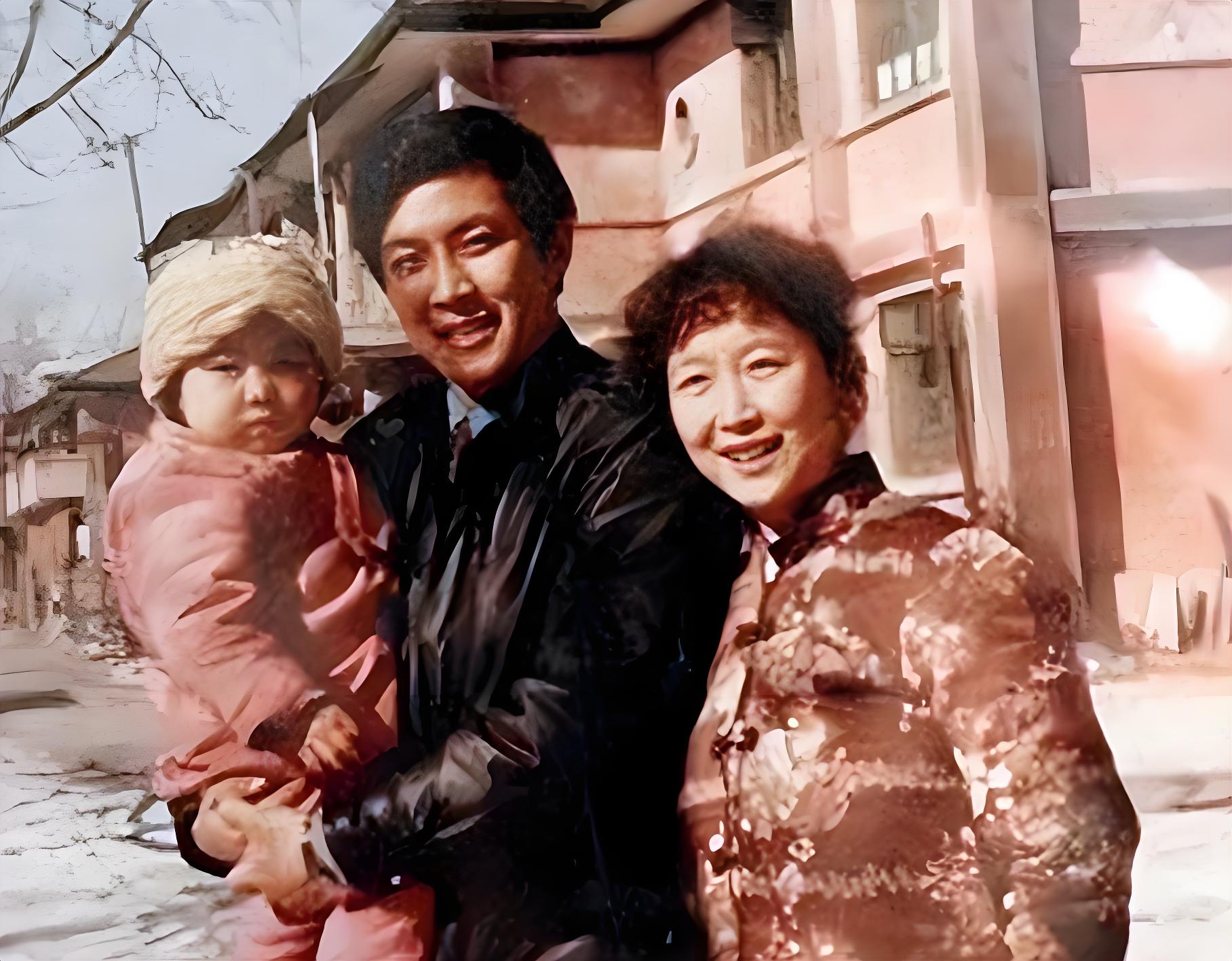 1983年,兩人的女兒出生,那時一家三口多麼美滿幸福。初為人父的唐國強抱著孩子,身旁有家人相伴,三人都面帶笑意。