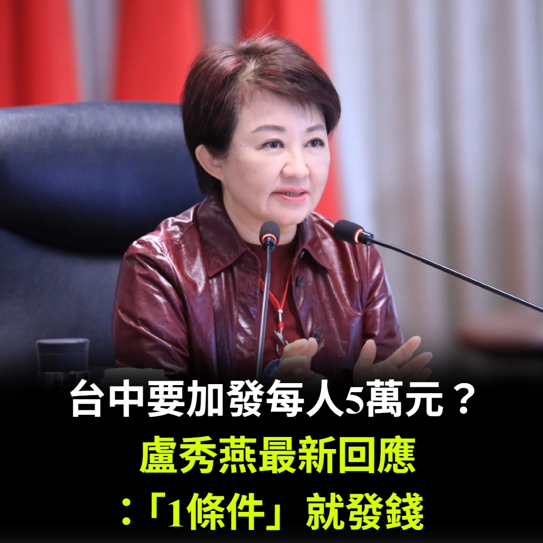 台中要加發每人5萬元?盧秀燕最新回應:「1條件」就發錢