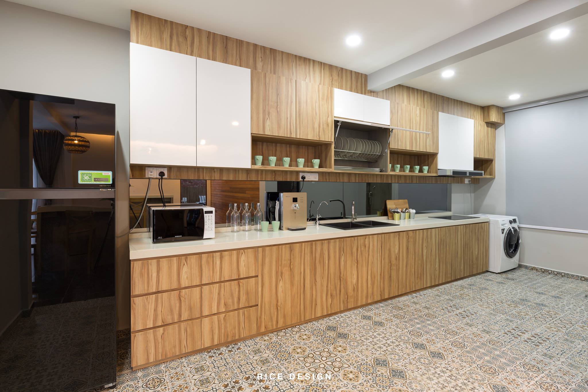 廚房和餐廳區的動線也十分寬敞,廚具、冰箱、洗衣機、餐盤應有盡有,如此整潔明亮的空間,即使是很多人同時在這裡,空間也不會過於擁擠。