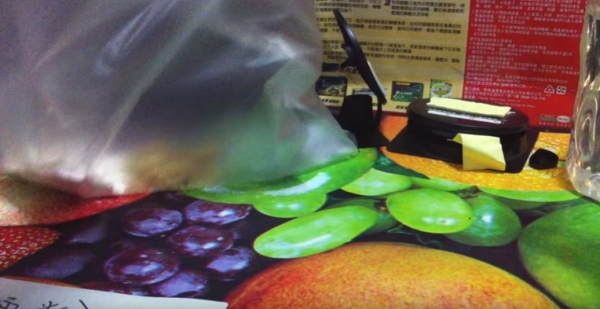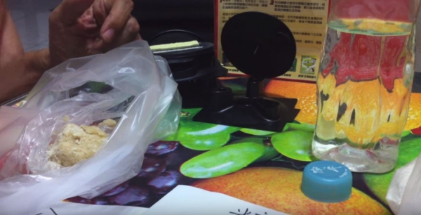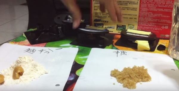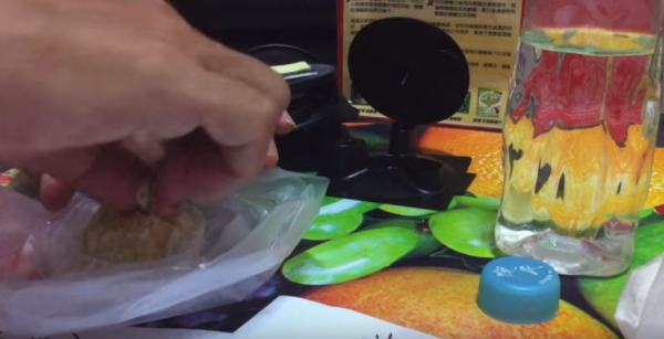 之後他把盒子裡的蟑螂藥劑全部取出,再把麵粉和砂糖這三樣東西放入塑膠袋裡,均勻揉合在一起成一塊蟑螂藥麵團!再加上一點水,讓麵團能有黏著性。