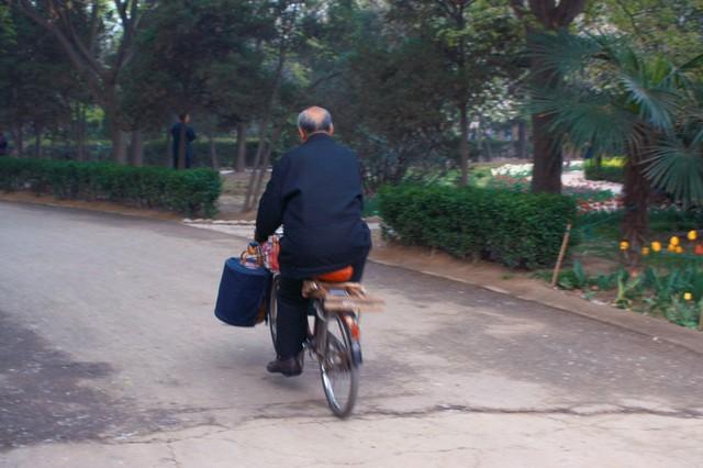 每天我就騎自行車提著鳥籠子去濕地公園那裡,和一幫老夥計下棋聊天。