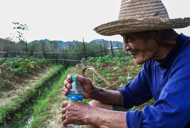 到了村裡,我遠遠地看見有一個彎腰駝背的老人在地里幹活,他戴著一個大草帽,我也沒有看清他的臉面。