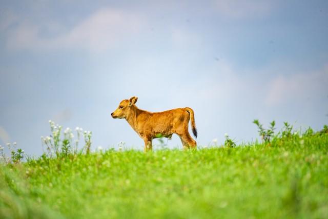我走在前面,把哥哥家的大門一打開。天吶,一頭小牛犢子一下子就竄了上來,差點把我拱倒了。