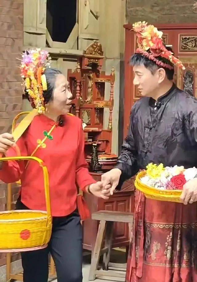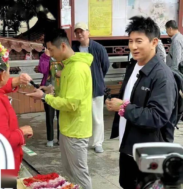 最顛覆認知的是他的狀態:發現有人拍照時,他不是閃躲而是扭頭笑著打招呼,眼角的紋路跟著表情堆成一團。這種「豁出去」的素顏,反倒讓網友集體破防,「終於看到不打針的男星了」「我爸55歲比他老十歲,這叫醜?」更有人翻出他和阿嬤簪花拍照的舊圖,穿花裙子笑得像個頑童的樣子,哪有半分 「四爺」 的高冷?