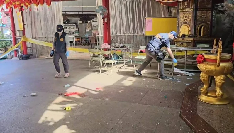 當時廟內還有其他民眾,距離湯翁約2公尺處有人正在看報紙,也有兩人坐著聊天。爆炸聲響起後,這些民眾全被嚇得四散閃避,見到老翁痛苦倒地後立即報案求救。警方到場封鎖現場採證,並前往湯翁住處搜查,但並未發現任何遺書或相關線索。