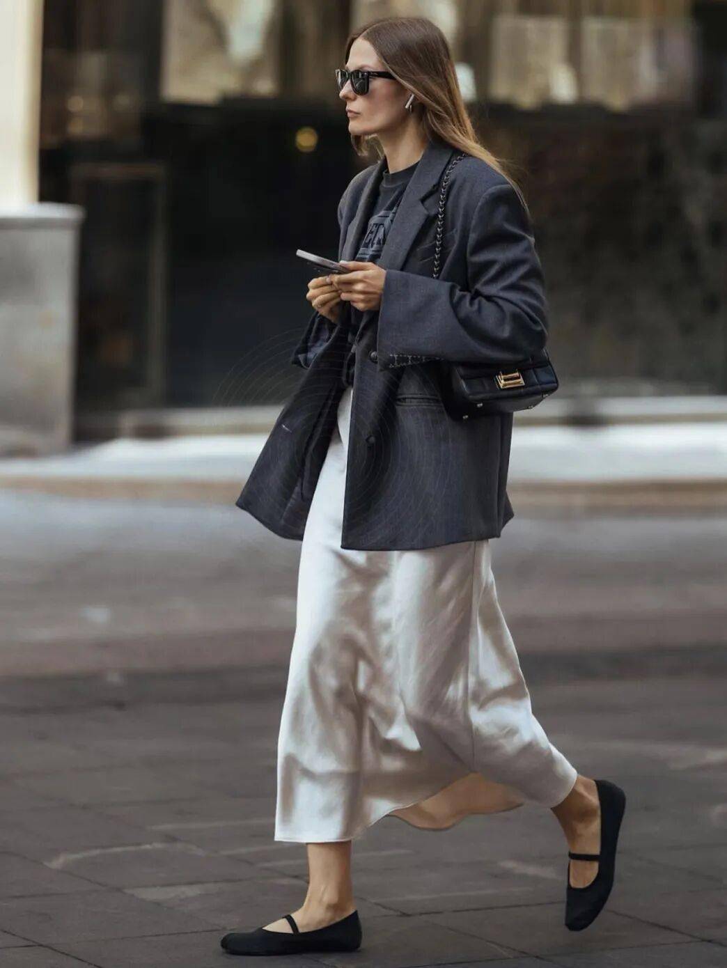 穿上這一身走在街頭,裙擺掃過腳踝的風,和瑪麗珍鞋面上那道橫帶,彷彿悄悄把舊日的溫柔一併鎖住。不知從哪天起,這組搭配像突然「開了光」,成了女孩之間心照不宣的時髦密碼。