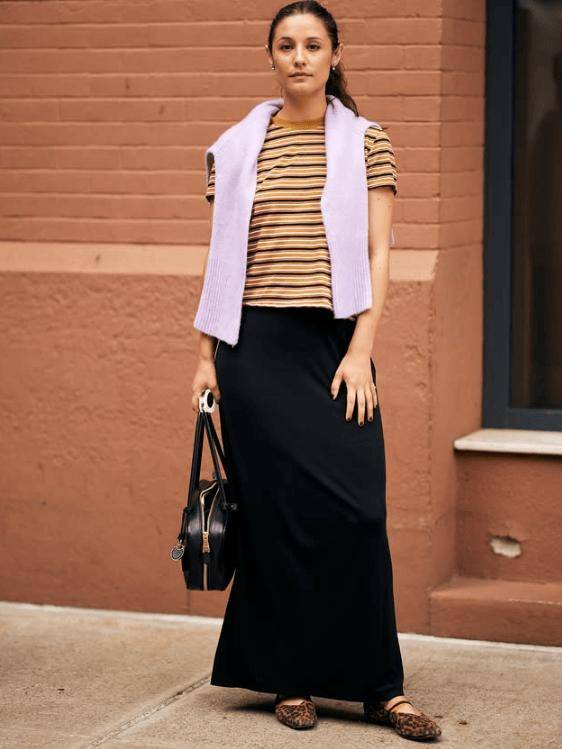 不是甜美公主風,而是長至腳踝的A字廓形,視覺上拉長線條,搭配襯衫或西裝,剛柔並濟,通勤也絲毫不違和。