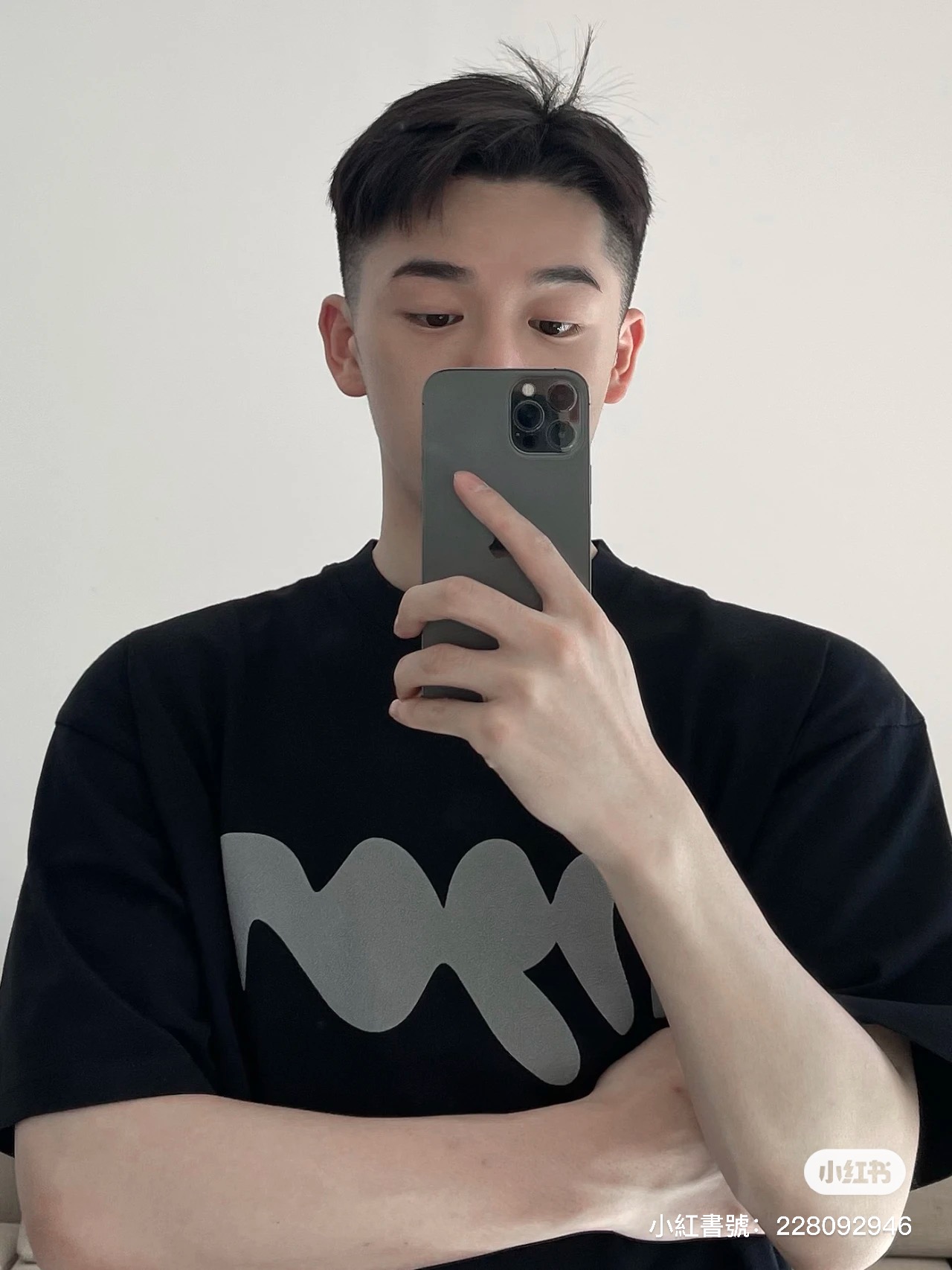 博主不僅濃眉大眼,加上高挑結實的身材,不管穿什麼自拍都非常好看呢~