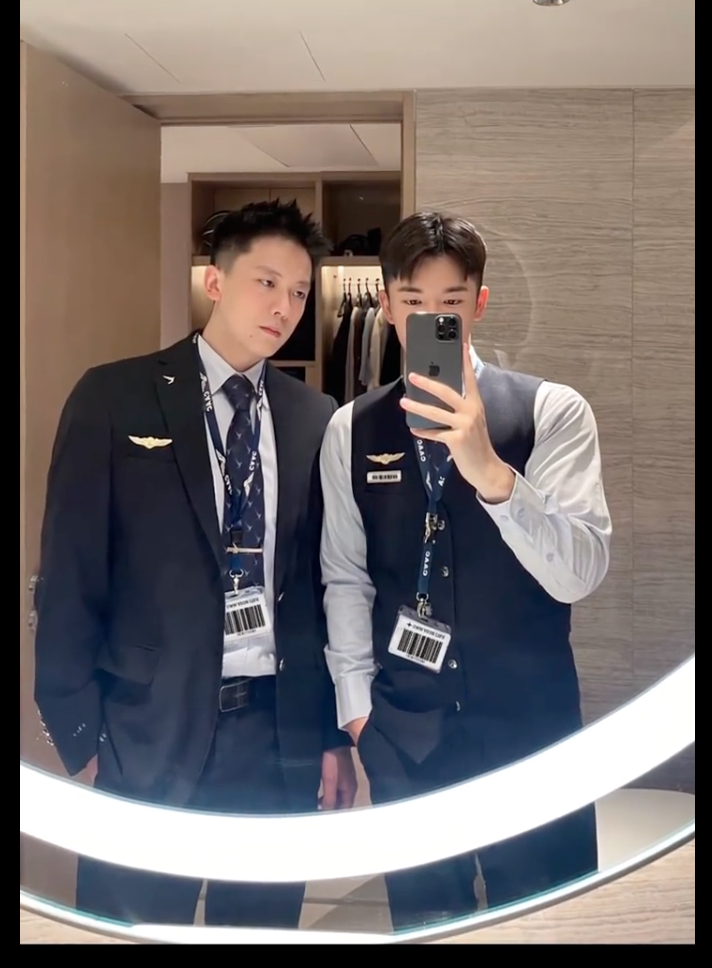 除了是一位網紅之外,其實博主真正職業是位飛機空服員!有次他分享自己上班時穿的制服,讓粉絲直呼:「真的是太帥了!!!」