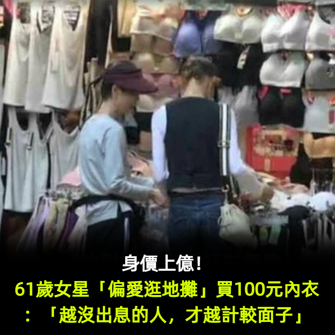 身價上億!61歲女星「偏愛逛地攤」從不炫富 買100元內衣鞋子:「越沒出息的人,才越計較面子」