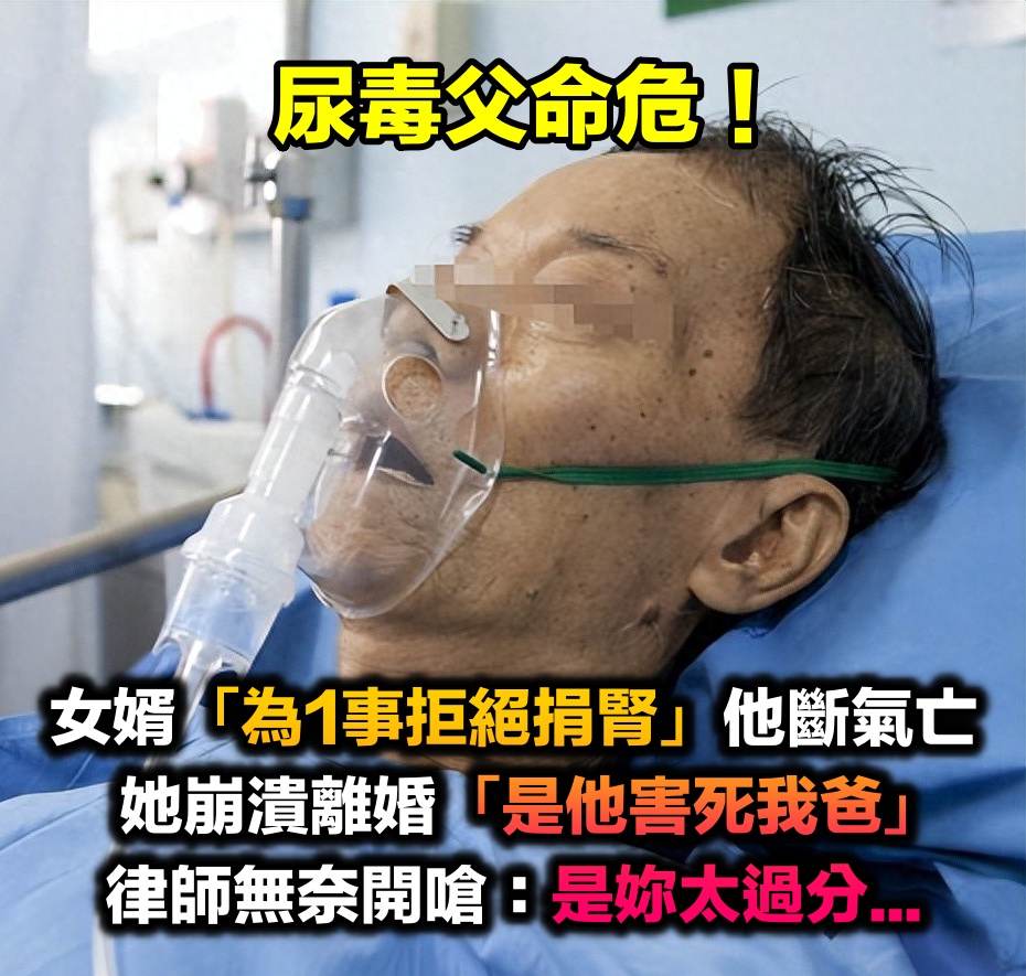 尿毒父送醫命危!女婿「為1事拒絕捐腎」爸斷氣而亡 她崩潰離婚「他害死我爸」律師怒噴:是妳太過分