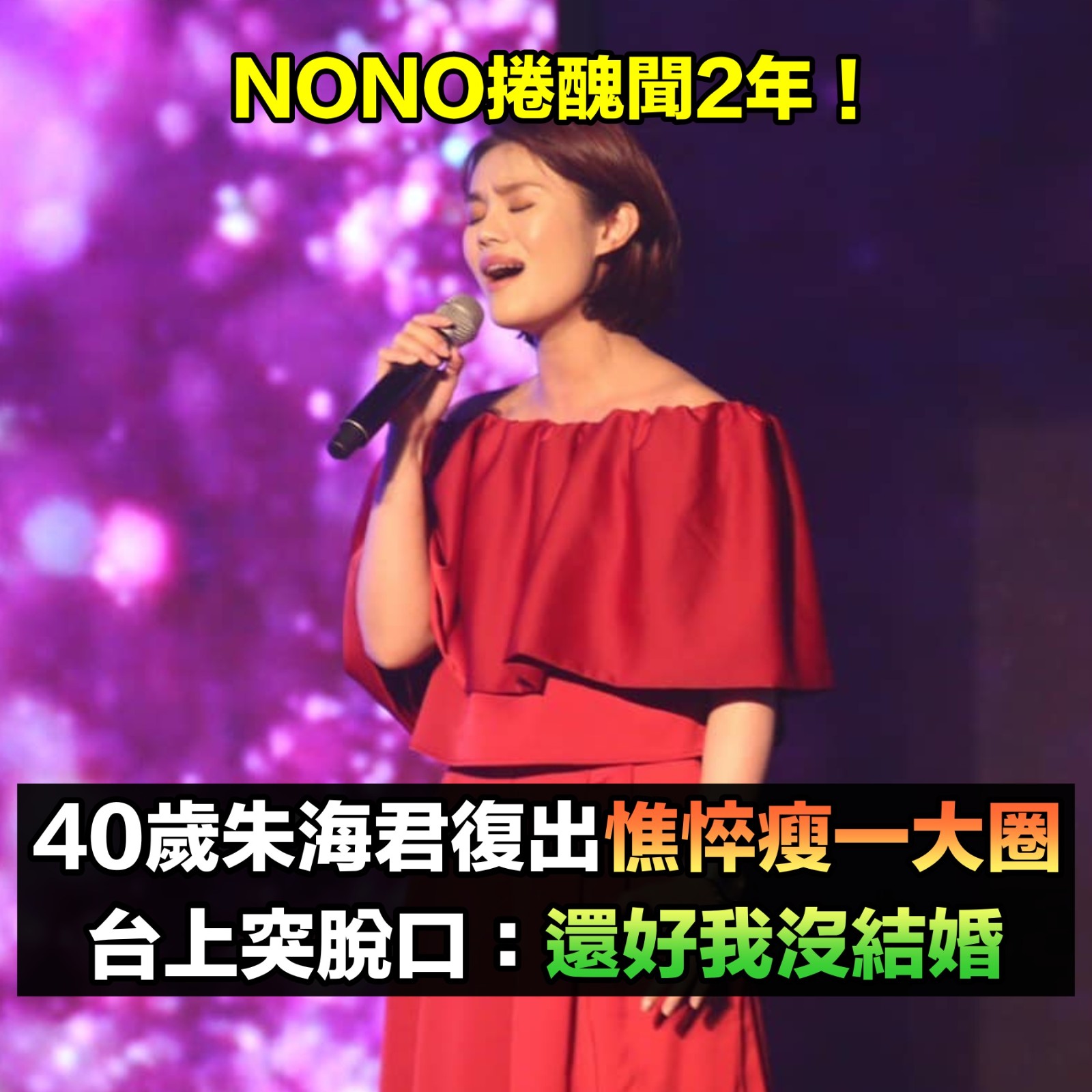 事實上,朱海君自從丈夫NONO捲入司法風波後,她的演藝事業遭受影響,她便立刻跟著淡出螢光。根據《TVBS新聞網》指出,朱海君2024年12月時便開始漸漸復出,接下花蓮富里「六十石山山腳下大草原」的「穀動日不落音樂祭」演出,去年末也接下屏東跨年演唱,醜聞爆發後,NONO工作已全面停擺至今,目前朱海君主要透過商演、廟會及公益活動等場合維持生計,獨自扛起家中經濟重擔。