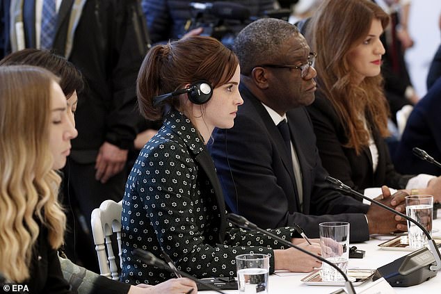 艾瑪華森在會議上神情相當投入,尤其在一群顧問委員中,年輕又臉蛋的她顯得格外突出和亮眼。