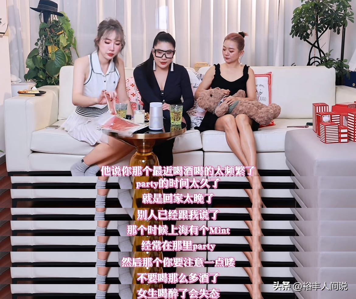 「你回家太晚了,別人和我說了,說你經常在酒吧(上海的mint)裡開party,然後你要注意一點,不要喝那麼多酒,女生喝醉了容易失態……」