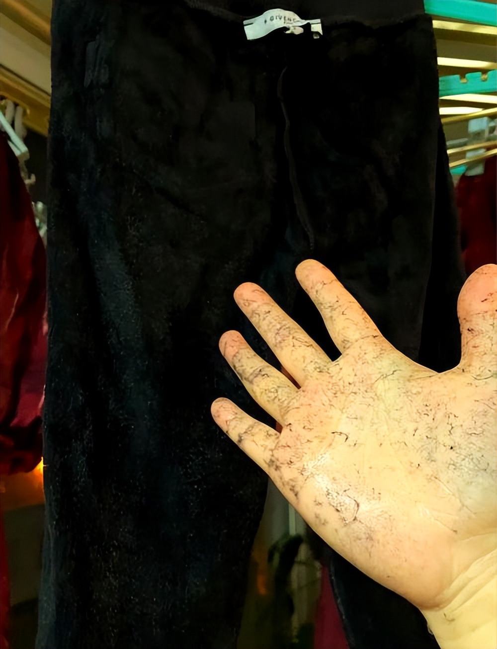 它們用的是低成本複合工藝:外層是普通的化纖布,裡層是廉價的人造絨,中間靠一層強力膠粘在一起。這層膠,就是 「毒加絨褲」 的核心元兇。
