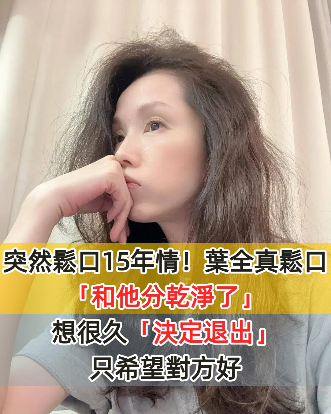 放手15年情!葉全真鬆口「和陳昭榮分乾淨」:決定退出 坦言「人生很難說」只希望對方好