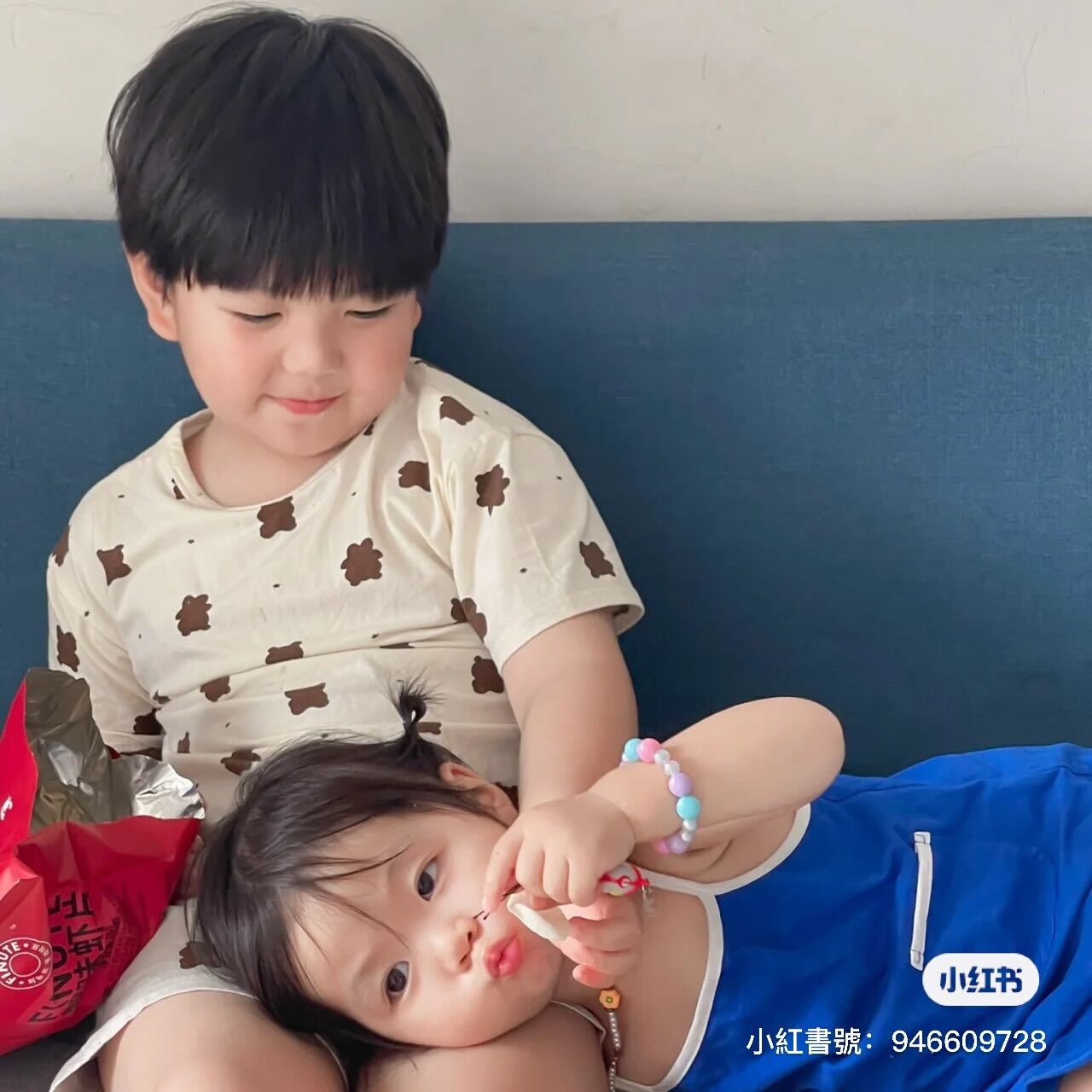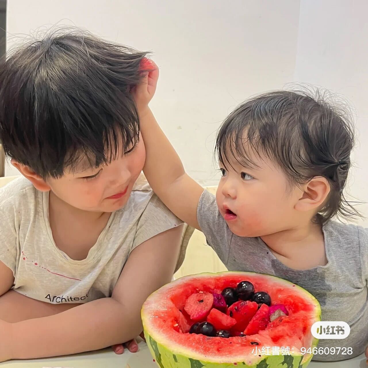 另外其實這個小女孩還有一位哥哥,馬麻也時常拍下兄妹倆相處的爆笑日常,手足之間真的是相愛相殺,兩人有時候會吵著該怎麼平分一塊蛋糕,有時候又會相親相愛的一起吃西瓜,只能說小朋友的相處真的太可愛了~