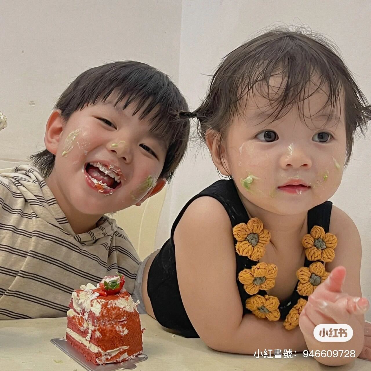 小兄妹吵吵鬧鬧的真的好可愛呀!!有這麼萌的妹妹怎麼捨得不分她吃蛋糕啦~