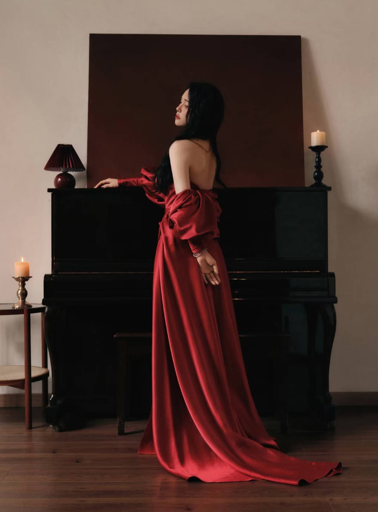 換上酒紅色睡裙,把伊能靜富有女人味的一面徹底展現出來,再梳上大波浪更是具有別樣的美感,