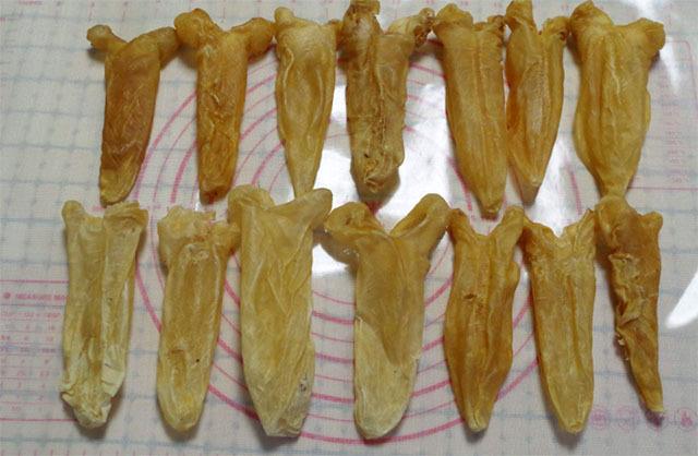 2.魚膠:說到魚膠大家可能並不熟悉,其實魚膠就是魚肚,由於富含膠質而被稱為魚膠。魚膠中含有大量的膠原蛋白質,而且非常利於人體消化吸收,所以廣受人們的青睞。魚膠可以增強腸胃的消化吸收能力,提高食慾;還能增強肌肉組織的韌性和彈力,所以關節損傷或是疼痛的人不妨常吃些魚膠,增強體力、修復關節。