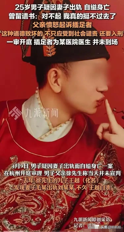 杭州新婚的一對夫妻因為妻子的出軌導致丈夫無法忍受,最終用自殺的方式結束了自己的生命。