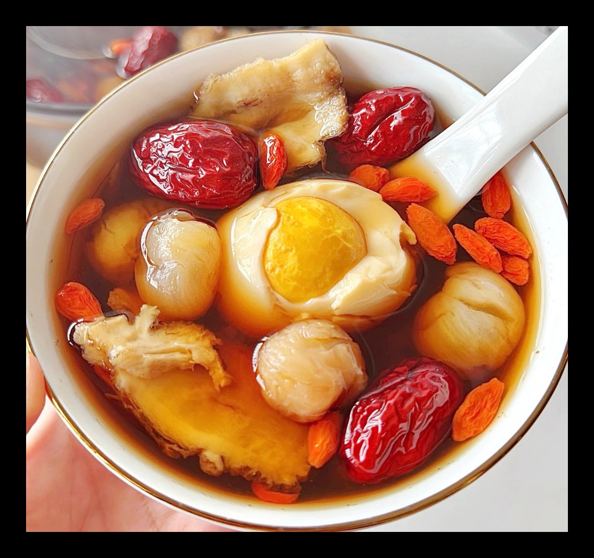更讓我沒想到的是,她家還常煮另一種甜湯——當歸黃芪桂圓紅棗雞蛋糖水。她說這不是葯,是「女生專屬暖身飲料」。做法其實不複雜:所有材料洗好丟進鍋,大火煮二十分鐘,等藥味出來了,再扔幾片生薑,加紅糖熬化,最後磕個雞蛋煮熟就行。冬天早上來一碗,整個人都被暖透了,連例假期間的小腹發涼都緩解了不少。