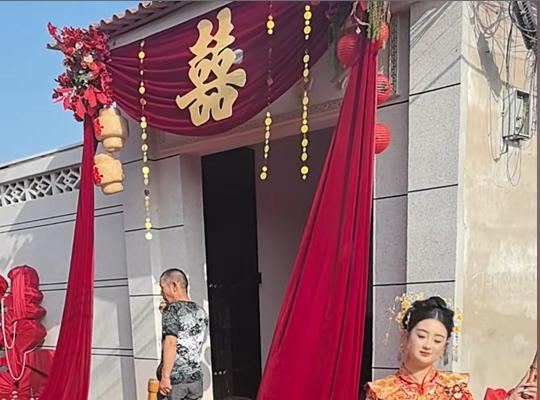 新娘是從自家農村大別墅出嫁的,別墅布置得非常喜慶,大紅燈籠掛了整整一條街道。