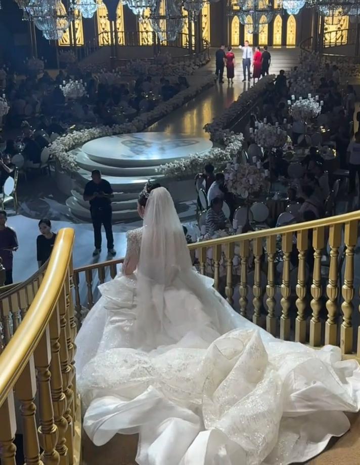 不僅家裡布置得大氣,這兩位新人的婚禮場地很氣派,新郎把新娘接到飯店後,婚禮就開始了。